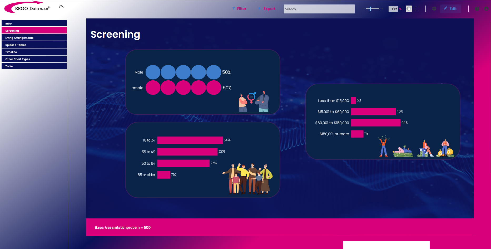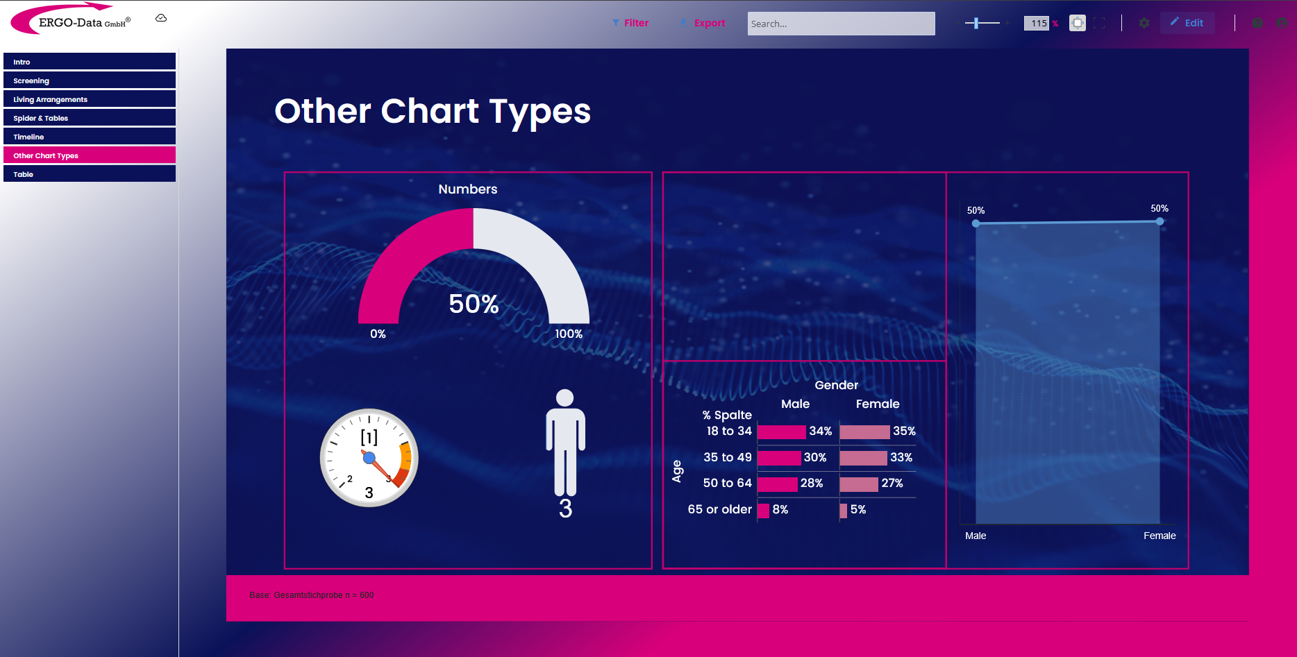 Ob statistische Reports, Charts, interaktive Ergebnistabellen, die Darstellung von PDF-Elementen oder die Verknüpfung mit externen Daten-Quellen, wir bringen Reports in Ihr individuelles Reporting-Portal. Der Zugriff auf die Portale ist selbstverständlich geschützt und bietet über ein individuelles Rechtesystem die Möglichkeit, jedem individuell die Informationen anzubieten, die für ihn gedacht sind.