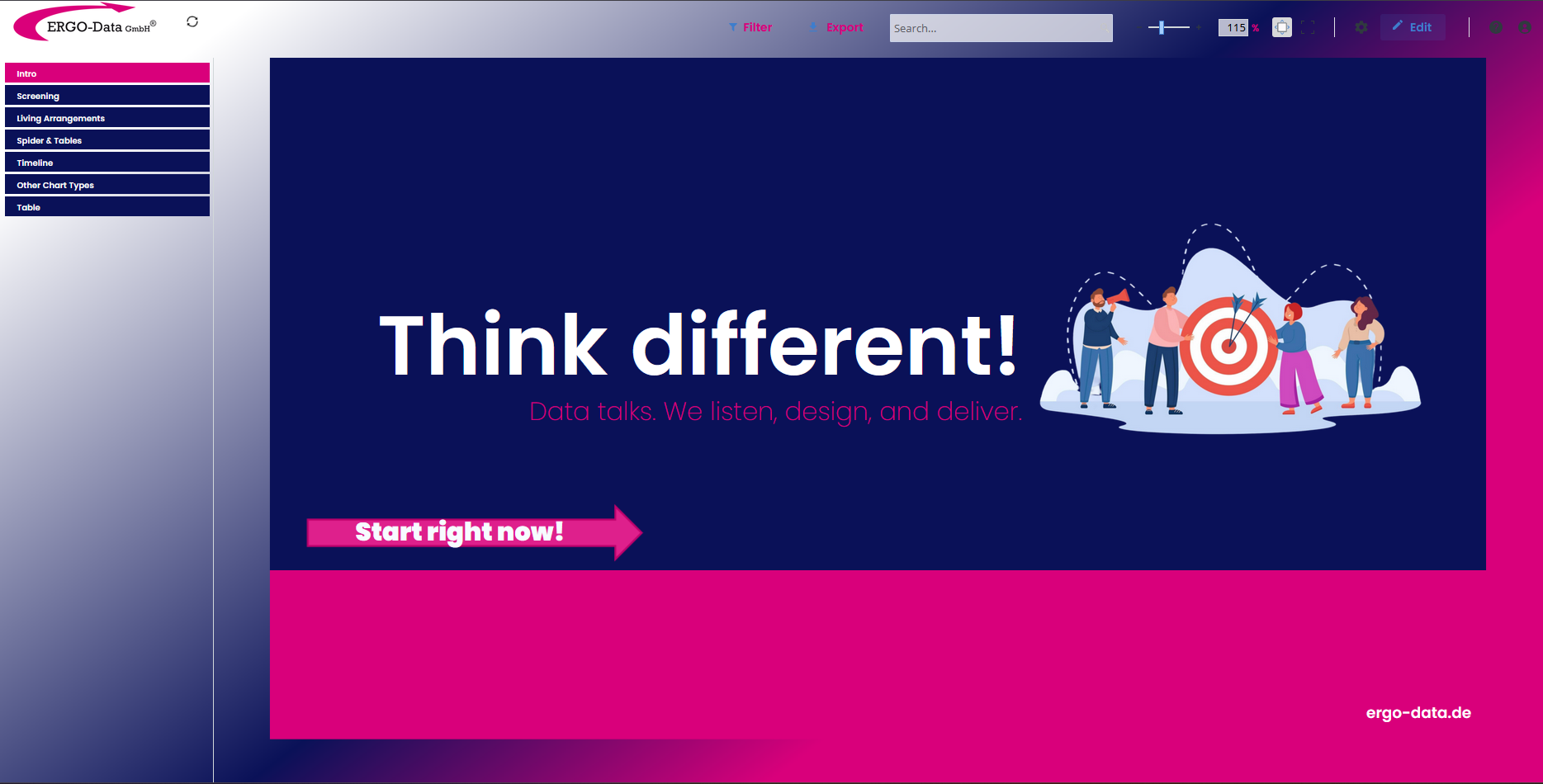 Sprechen Sie uns an, dann werden wir auch für Ihr Berichtswesen neue Dimensionen öffnen.